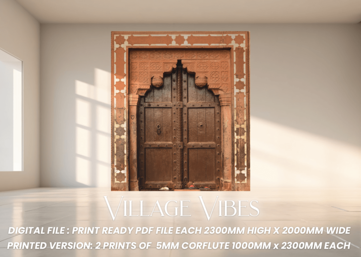 Step into the rustic charm of Village Vibes, a beautifully captured traditional doorway that brings an authentic, vintage feel to any setting. Featuring an intricately carved wooden door framed by a weathered terracotta arch, this backdrop exudes warmth, heritage, and cultural richness. Whether for a wedding, a themed photoshoot, or a cozy ambiance, this design sets the perfect nostalgic tone.